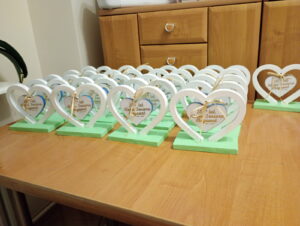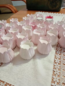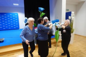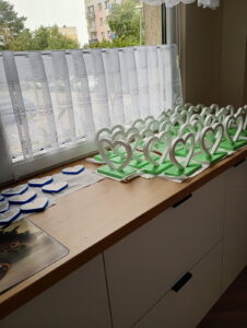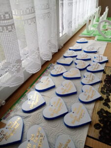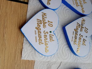 Jednym z najważniejszych elementów dekoracji jubileuszowego wydarzenia były ręcznie robione statuetki autorstwa Teresy – członkini grupy, która słynie z niezwykłej precyzji i talentu do form przestrzennych. Każda statuetka została wykonana osobno, z dużą dbałością o detal, i symbolizuje wspólnotę, energię oraz piękno płynące z aktywności seniorskiej. To nie tylko ozdoby – to osobiste, wyjątkowe symbole dziesięcioletniej historii Klubu.