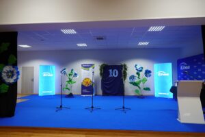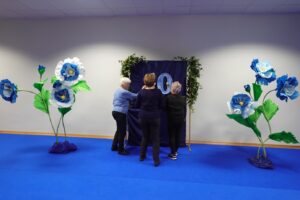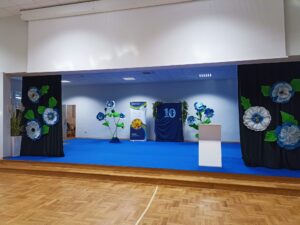 Nie sposób przejść obojętnie obok pięknych, dużych kwiatów z krepiny, które stworzyły wszystkie członkinie grupy „Babki na Obcasach”. To właśnie one stanowiły jeden z głównych punktów dekoracyjnych sali. Kwiaty w żywych barwach symbolizują energię, różnorodność i kobiecą siłę. Każdy z nich powstawał z cierpliwością, śmiechem i poczuciem wspólnoty – dokładnie tak, jak funkcjonuje cała grupa. Te imponujące kompozycje nie tylko udekorowały przestrzeń, lecz również pokazały, jak wiele można osiągnąć, działając razem i dzieląc się talentem.