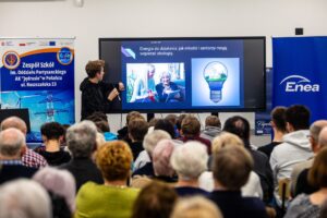 Projekt Energia Pokoleń – Akademia Megawatu Enei łączy edukację, ekologię i międzypokoleniową współpracę w jednym spójnym działaniu. Jego celem jest popularyzowanie wiedzy o energetyce, odnawialnych źródłach energii i efektywnym korzystaniu z zasobów, a także rozwijanie postaw proekologicznych oraz umacnianie relacji między młodzieżą i seniorami. To właśnie ta formuła – wspólne rozmowy, wymiana doświadczeń i praktyczne spojrzenie na energetykę – buduje wyjątkowy klimat spotkań.