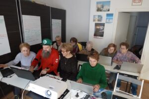 Stowarzyszenie Klub Seniora” Megawat” w Połańcu kontynuuje realizację projektu pn. „Seniorze! nie daj się złowić w sieci” w ramach projektu „Czar Świętokrzyskich Inicjatyw” realizowanego w ramach konkursu – Moc Małych Społeczności ogłoszonego przez Narodowy Instytut Wolności, którego operatorem regionalnym jest Stowarzyszenie Lokalna Grupa Działania „Krzemienny Krąg”. Seniorzy ze Stowarzyszenia Klub Seniora „Megawat” odkrywają świat grafiki – warsztaty z Canvy