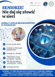 W dniu 27.10 2025 r. powstała ulotka informacyjno-edukacyjna z zakresu zagrożeń w cyberprzestrzeni dla seniorów z Miasta i Gminy Połaniec w ramach projektu pn. Seniorze! nie daj się złapać w sieci ” w związku z programem „Czar Świętokrzyskich Inicjatyw” , w ramach konkursu – Moc Małych Społeczności ogłoszonego przez NIW.